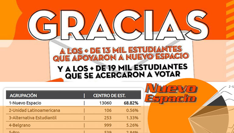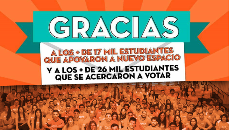 A los más de 13 mil estudiantes que apoyaron a Nuevo Espacio y a los más de 19 mil estudiantes que se acercaron a votar. GRACIAS