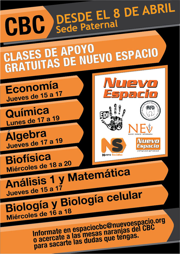 CBC: Clases de Apoyo en PaternalDesde el 8 de Abril Clases de apoyo gratuitas. admin30 marzo, 2013Sede Paternal