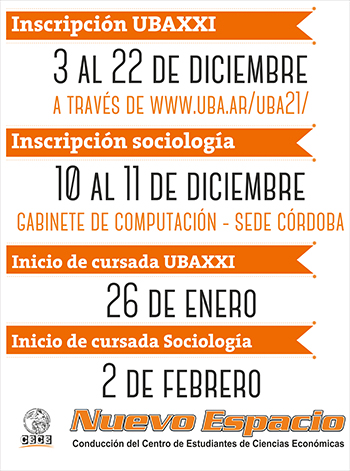 Inscripción: 3 al 22 de Diciembre a través del Sistema UBA XXI.