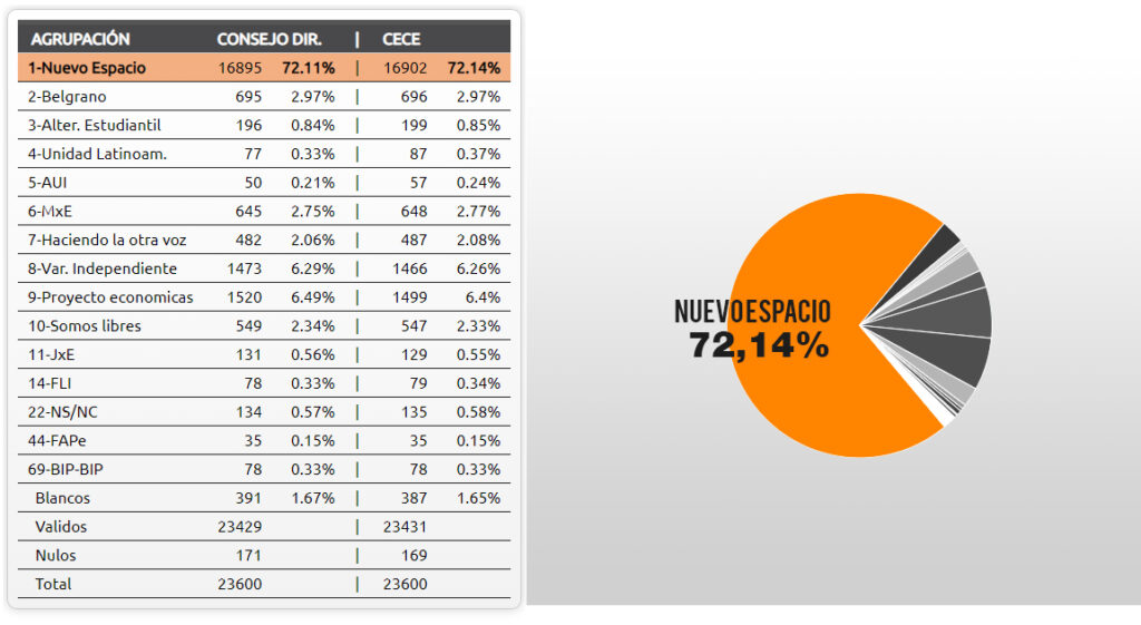 Agradecemos a los más de 16 mil estudiantes que eligieron a Nuevo Espacio y a los más de 23 mil que participaron de la elección.