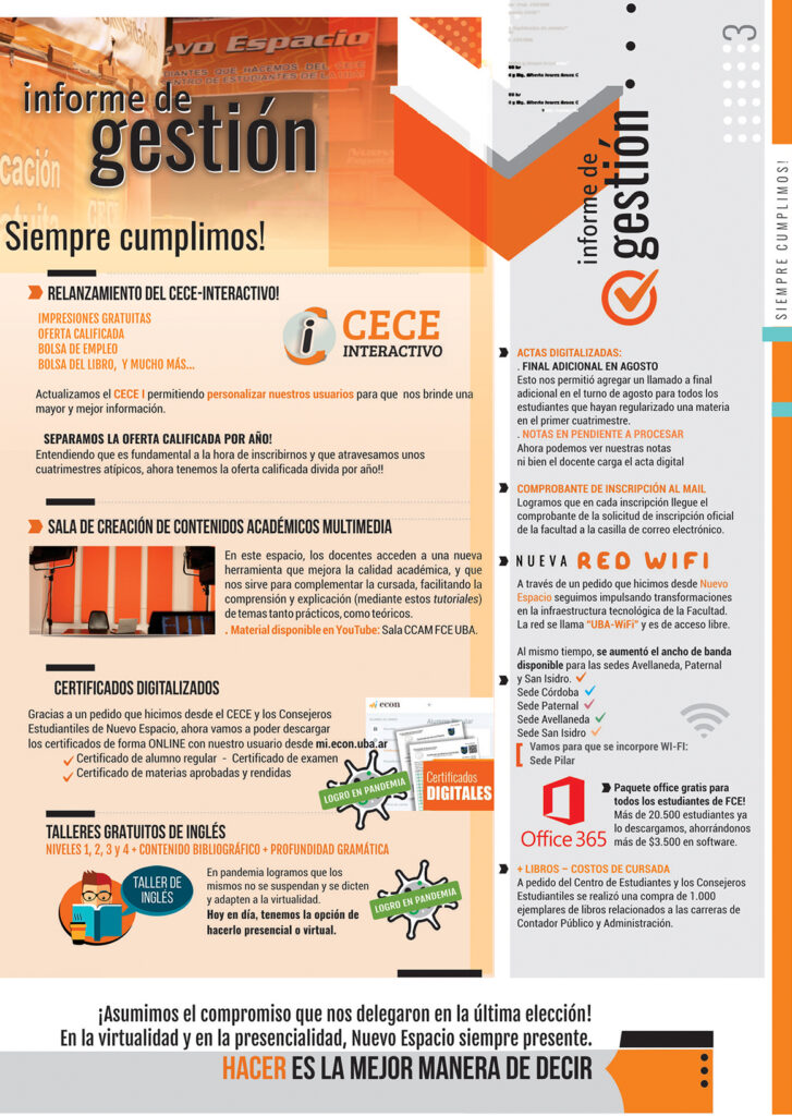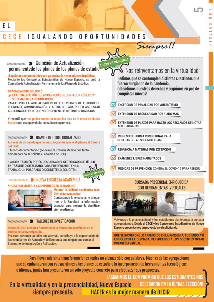 Nuevo Espacio en el CECE y el consejo directivo